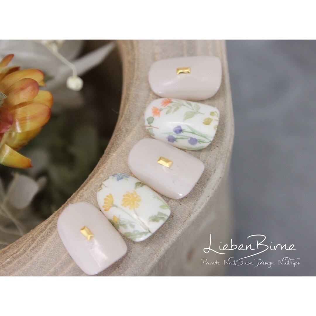 ダスティカラーで描かれたボタニカルネイルのご紹介♪