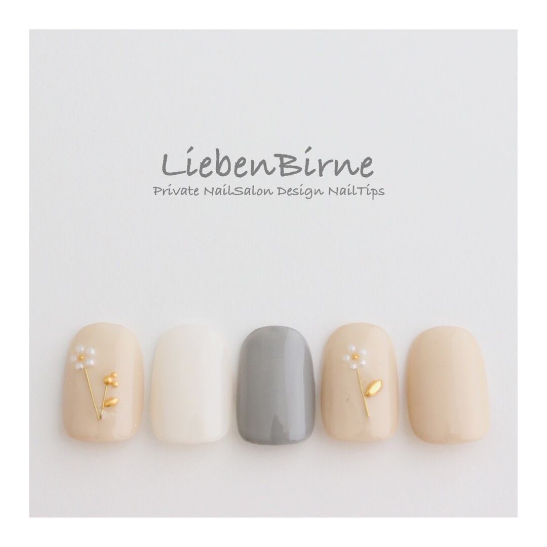 ヌーディカラーが美しい、フラワーネイルです(*^^*)