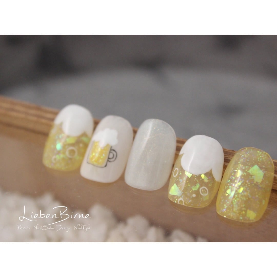のどごし最高!シュワシュワ、あわあわなビールのネイルです♪