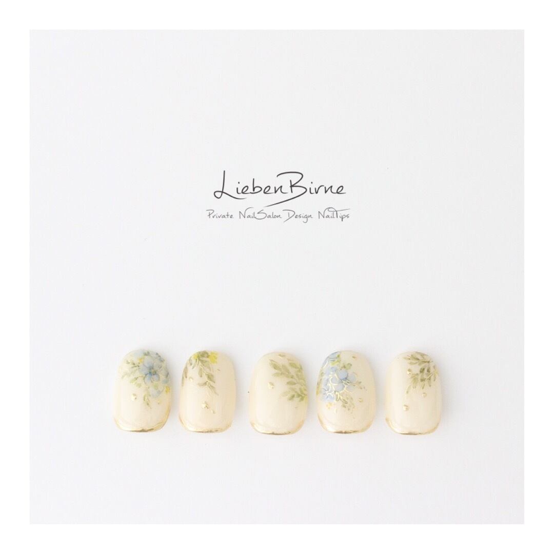 爽やかで可憐な雰囲気のフラワーネイル。