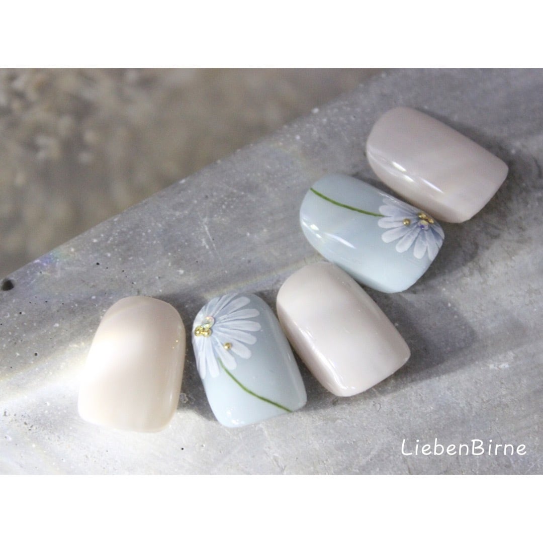 一輪のお花が印象的なネイル。指先に咲くお花でガーリーにも、エレガントにもキュートにも♡
